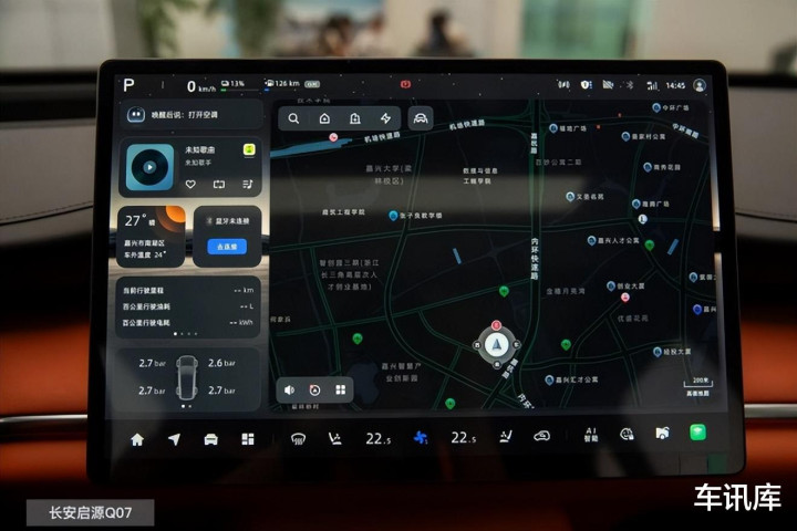 启源Q07的天域座舱则采用了49英寸AR-HUD抬头显示+15.4英寸触控屏,后者能够在观看导航时随用户转向,能进一步降低观看与触控操作的安全风险,而且它不光能让二排的家人或朋友也直接用语音进行交互操作,AI天枢大模型的加入还能帮咱们用户哄娃、更好地理解老人的指令意图,也帮咱们解答更多旅途中的问题,让智能真正实用、好用。